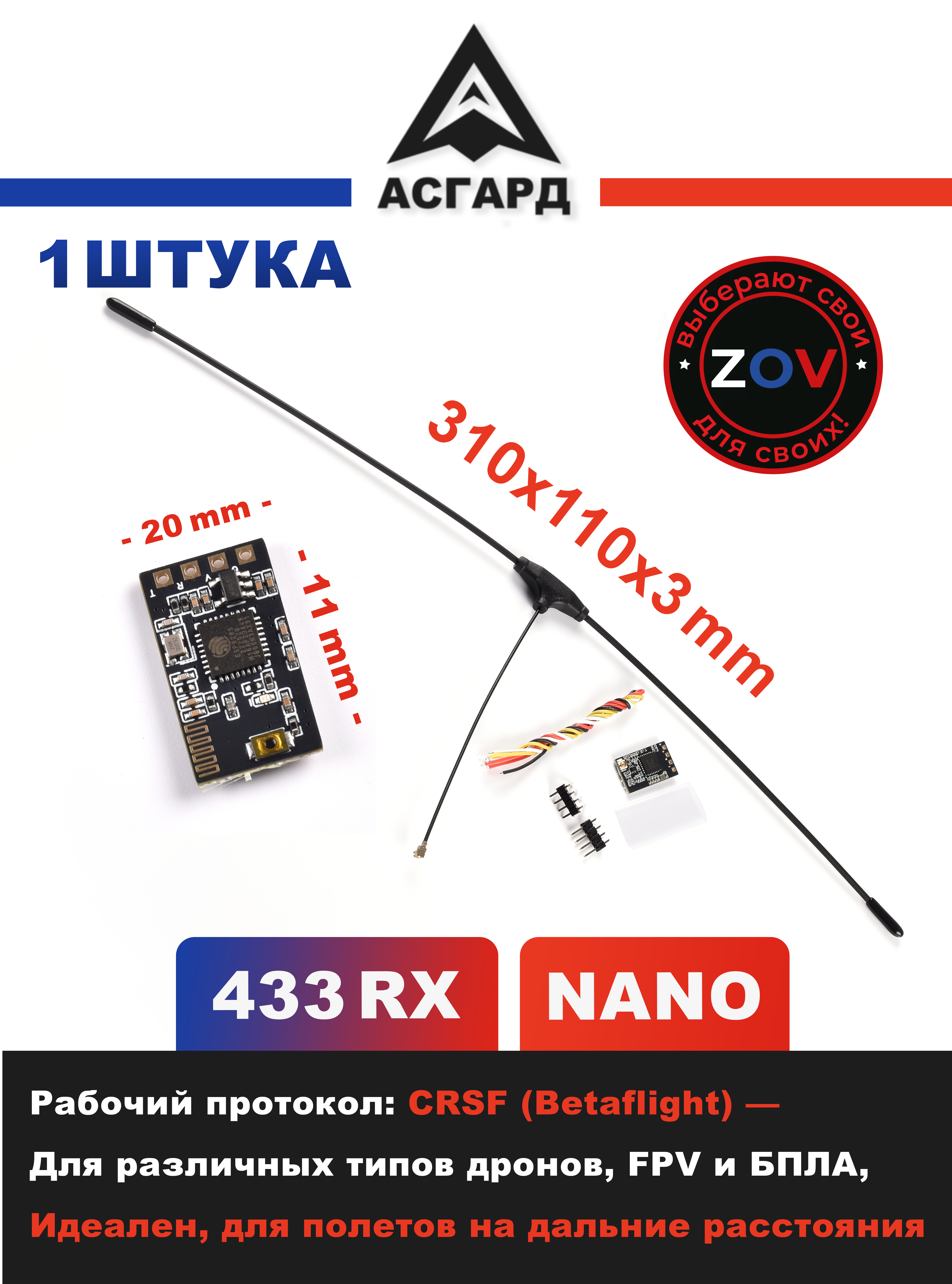 Приемник ELRS 433MHz NANO черный Тип 1