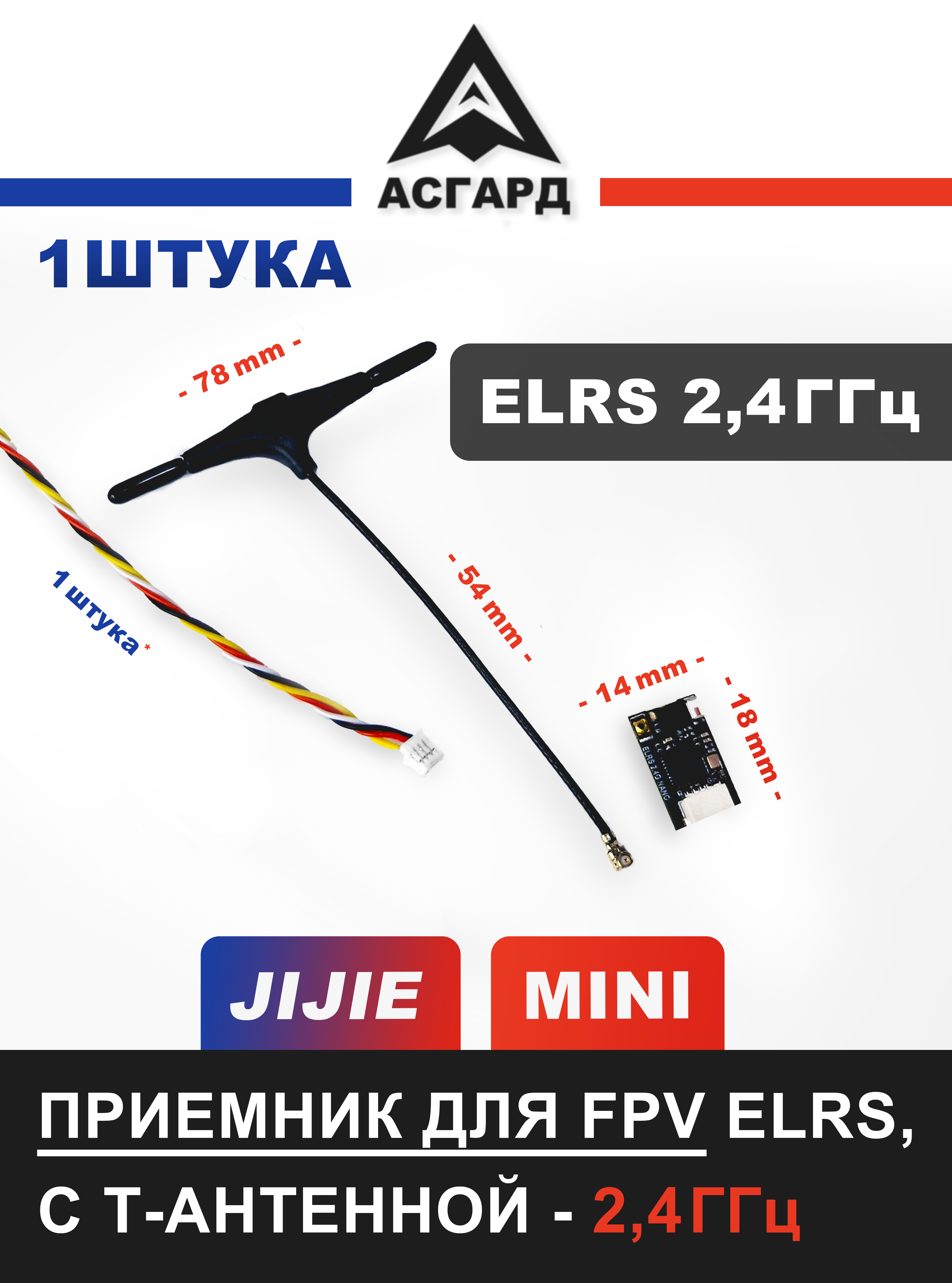 Комплектация: приемник с т-антенной JIJIE 2,4 MHz ELRS для FPV, в сборе - 1 штука