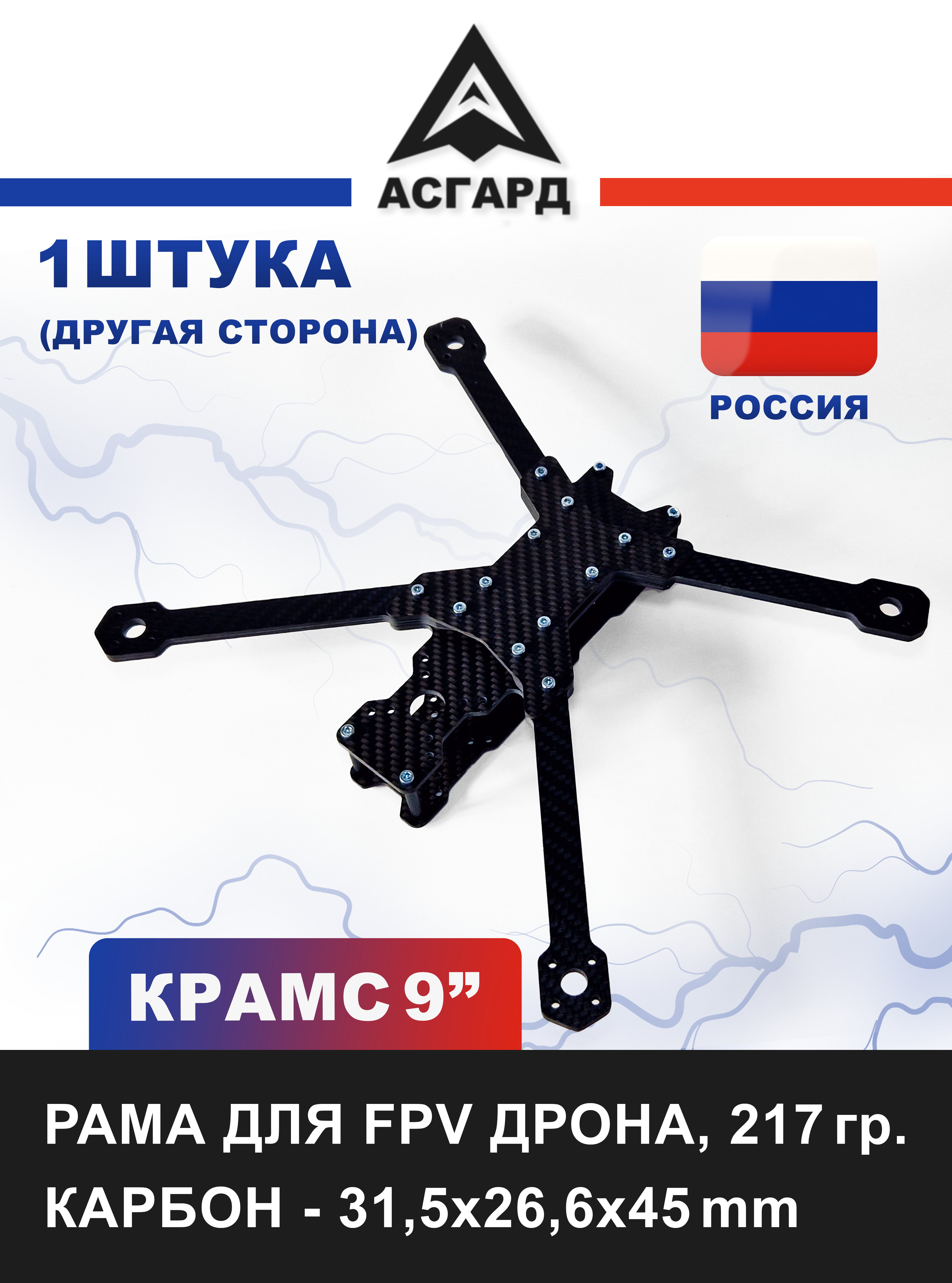 - Рама FPV дрона - КРАМС 9" российского производства из карбона, предназначена для сборки квадрокоптера.